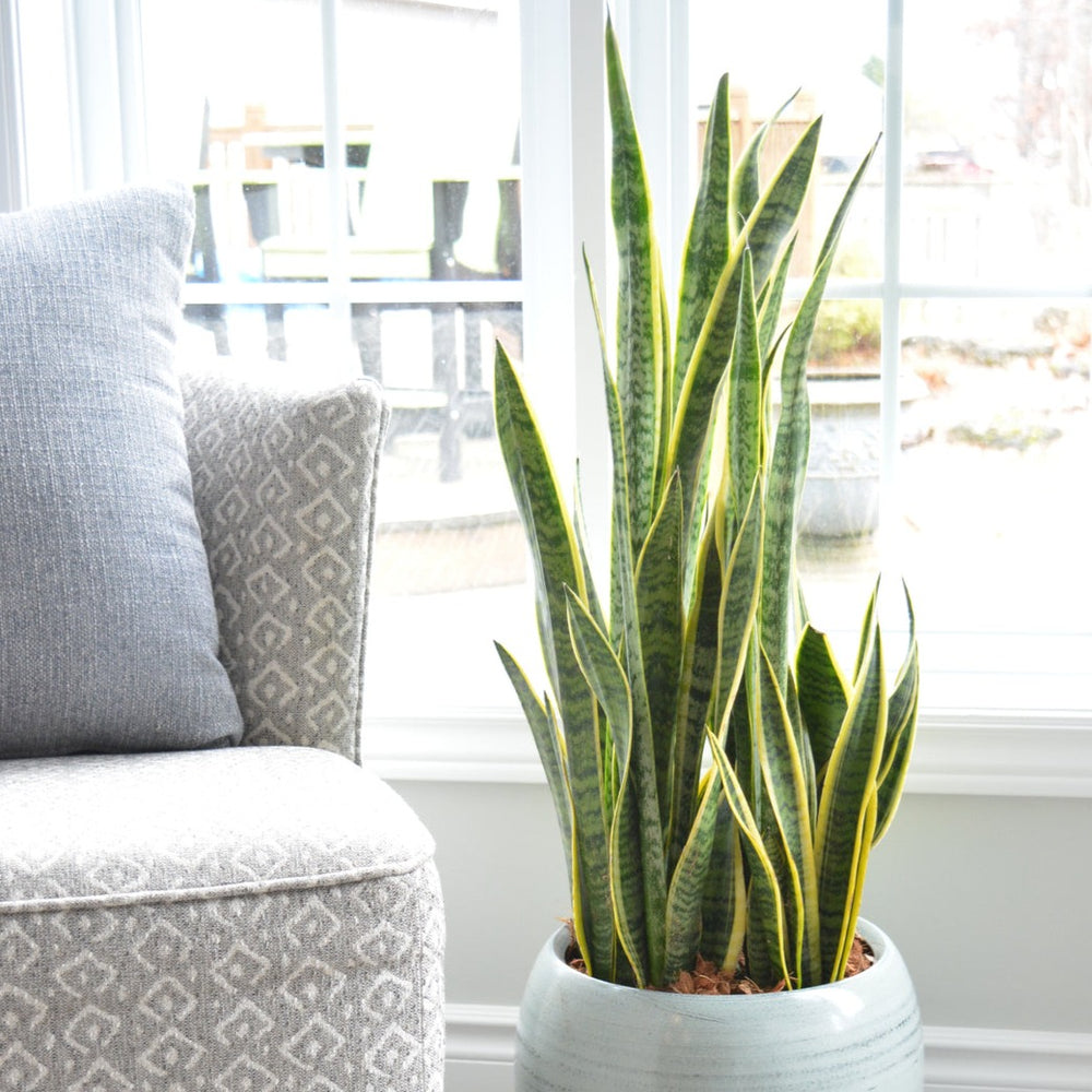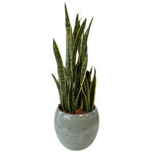 The Snake Plant Laurentii is a succulent plant characterized by its upright swordlike leaves with vibrant yellow edges. *Plant height will vary.