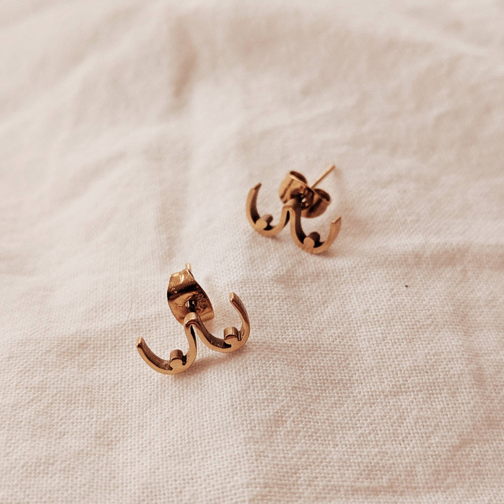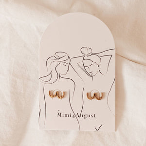 Minimal earrings, boob shaped! Comes with a clever packaging card. Features - 1.2 cm x 0.7 mm - Composition: Gold plated stainless steel. Very light and able to be worn all day