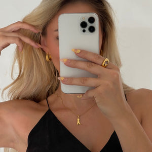 A thin snake chain necklace holding a dainty cowboy boot pendant.