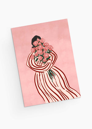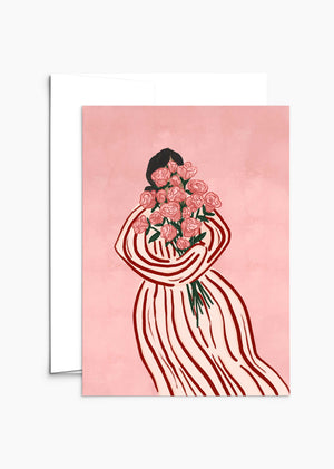 Celebrate life’s sweetest moments with our elegant Bouquet of Flowers greeting card. This hand-illustrated design features a graceful figure embracing a lush bouquet of pink roses, set against a soft pink background. Whether you’re expressing gratitude, love, or simply sending warm wishes, this card conveys your sentiments beautifully. ❤️