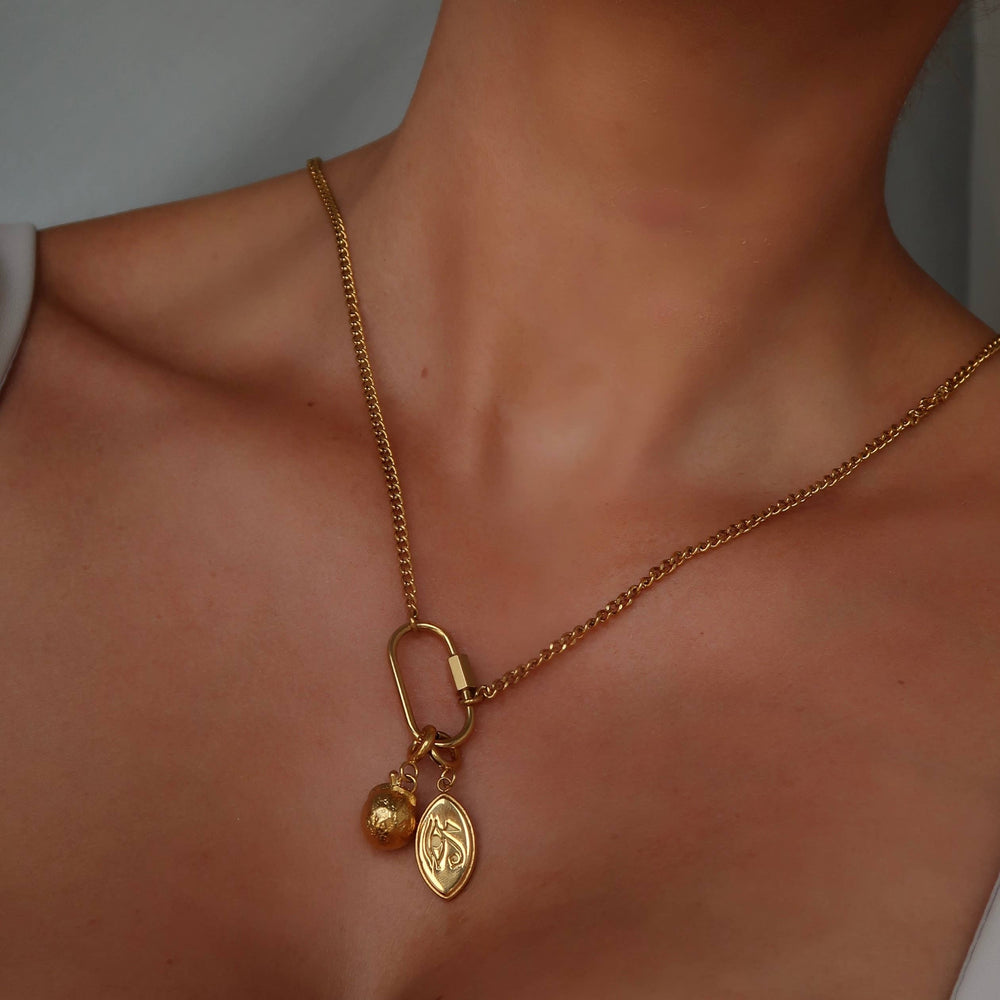 Elevate your favorite pendants and charms with a stylish necklace featuring a convenient carabiner clasp. The easy-to-open carabiner allows you to effortlessly slide on your preferred pendants with ease.
