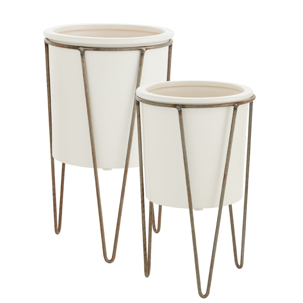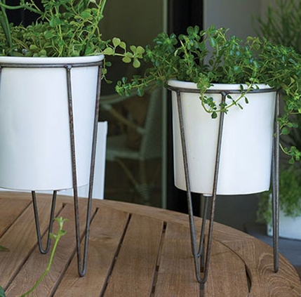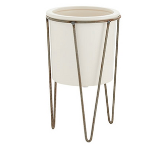 The modern Cassa Plant Stand features a simple ceramic pot with a beautiful glaze, fitted in a metal stand with hairpin legs for a unique piece perfect for your urban space.