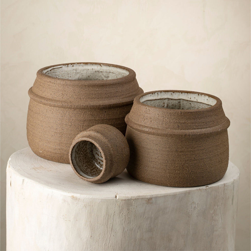 The Coast Pot has a grainy organic feel to it with natural variations from the artisan's touch bringing life and soul. Unglazed on the outside, and featuring a speckled reactive glaze on the inside, it brings handcrafted appeal to interior spaces. Use this ceramic piece as a plant pot or to hold fresh or faux blooms.