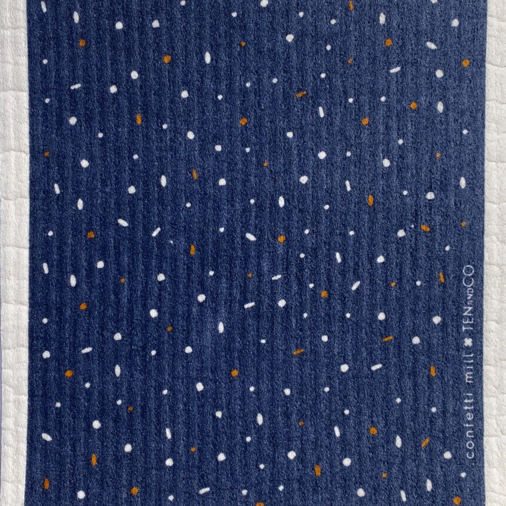 The Ten and Co. plastic-free dishcloth, the Swedish Sponge Cloth, in our original Confetti Mill print in collaboration with the Confetti Mill!