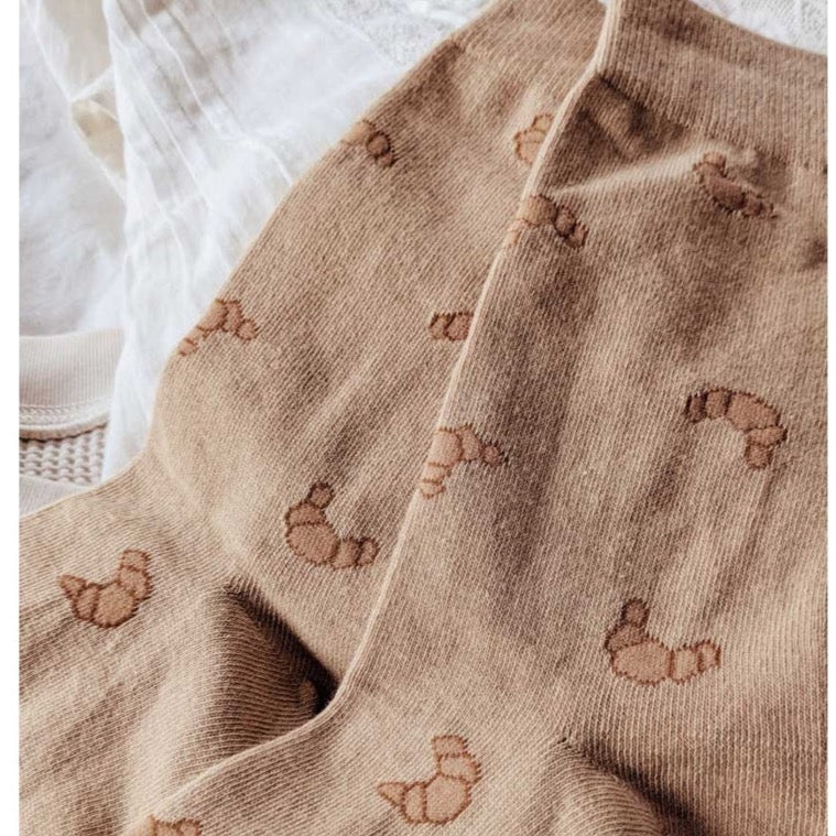 Who doesn't love the smell of a freshly baked croissant in the morning? Our croissant socks will give you that smell all day. LES PETITS BAS are beautiful, durable and comfortable socks designed for an everyday use. It will keep your feet cozy and warm in any situation.