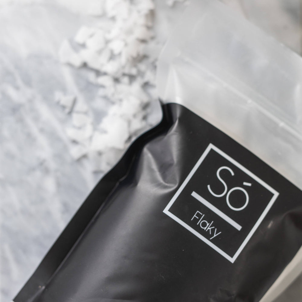 Só Flaky is our unscented Magnesium Bath Flake Sóak.