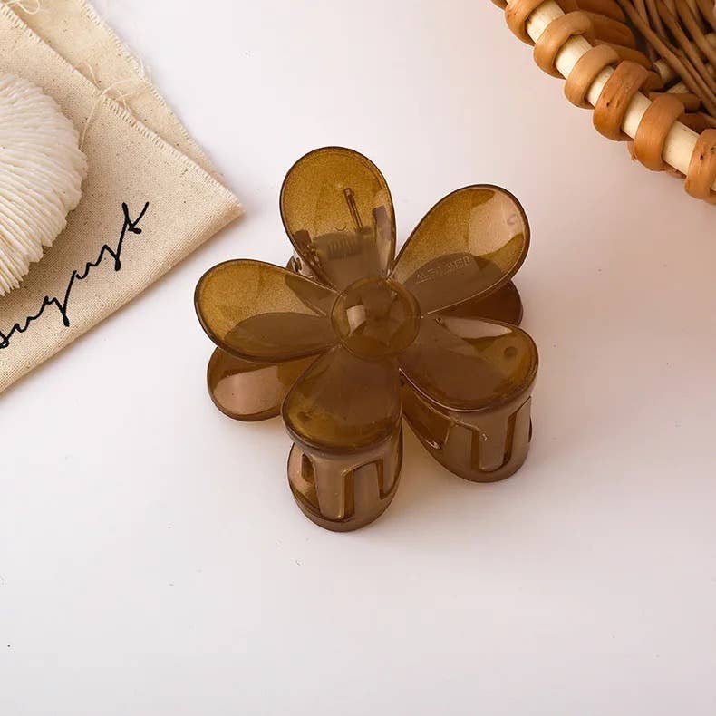 Introducing the Flower Claw Clip in Pink - it's glossy, translucent, and oh so cute! This trendy clip is not only well-made, but will also have you turning heads!