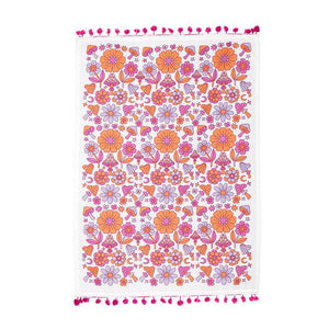 You don't have to be a hippie or a fan of psychedelic design to appreciate the bright colours and flair of this Groovy Mushrooms Kitchen Towel. Crafted out of cotton, this white towel features a pink, purple and orange assortment of graphic-style mushroom and blooms for a groovy complement to any type of kitchen decor.