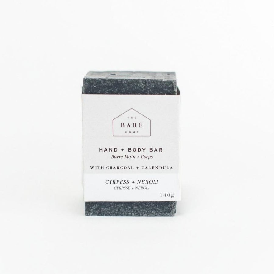 Ingredients/Ingrédients: Saponified oils of Cocos nucifera (Coconut) + Calendula officinalis (Calendula oil), Charcoal Powder, Cupressus sempervirens L (Cypress essential oil), Citrus aurantium L (Neroli essential oil)