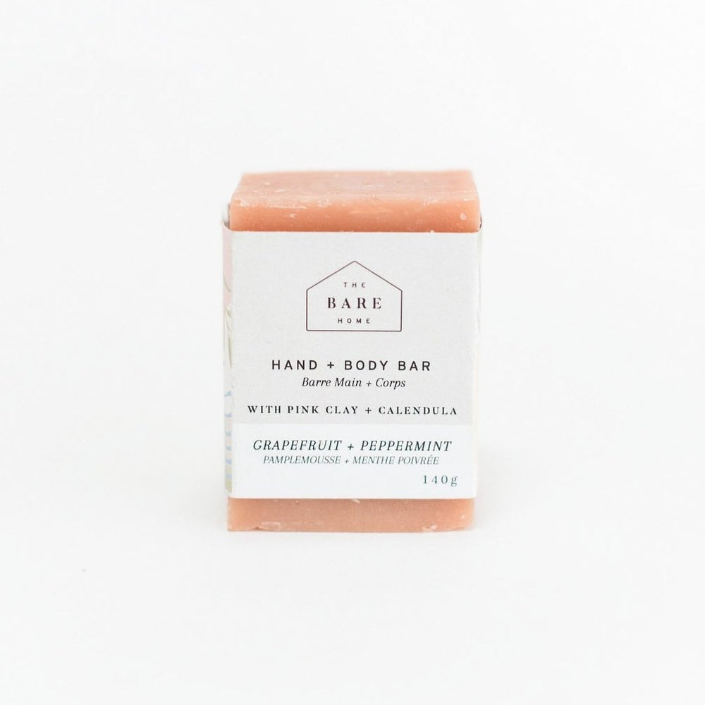 Ingredients/Ingrédients: Saponified oils of Cocos nucifera (Coconut) + Calendula officinalis (Calendula oil), Illite/Kaolin (Pink Clay), Citrus paradisi (Grapefruit essential oil), Mentha piperita (Peppermint essential oil)