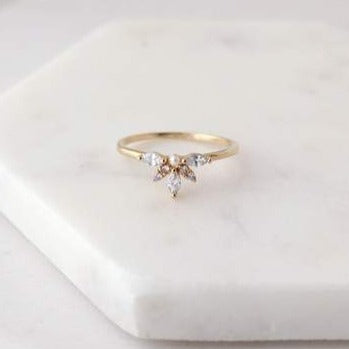 Size 7, A Gold-plated Brass Ring featuring Cubic Zirconia and Faux Pearl