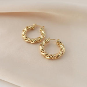Make a statement with this pair of gold-plated twisted hoops. Surprisingly lightweight with a hinge closure, these Jessie Hoops will have you looking fresh anywhere you wear them.