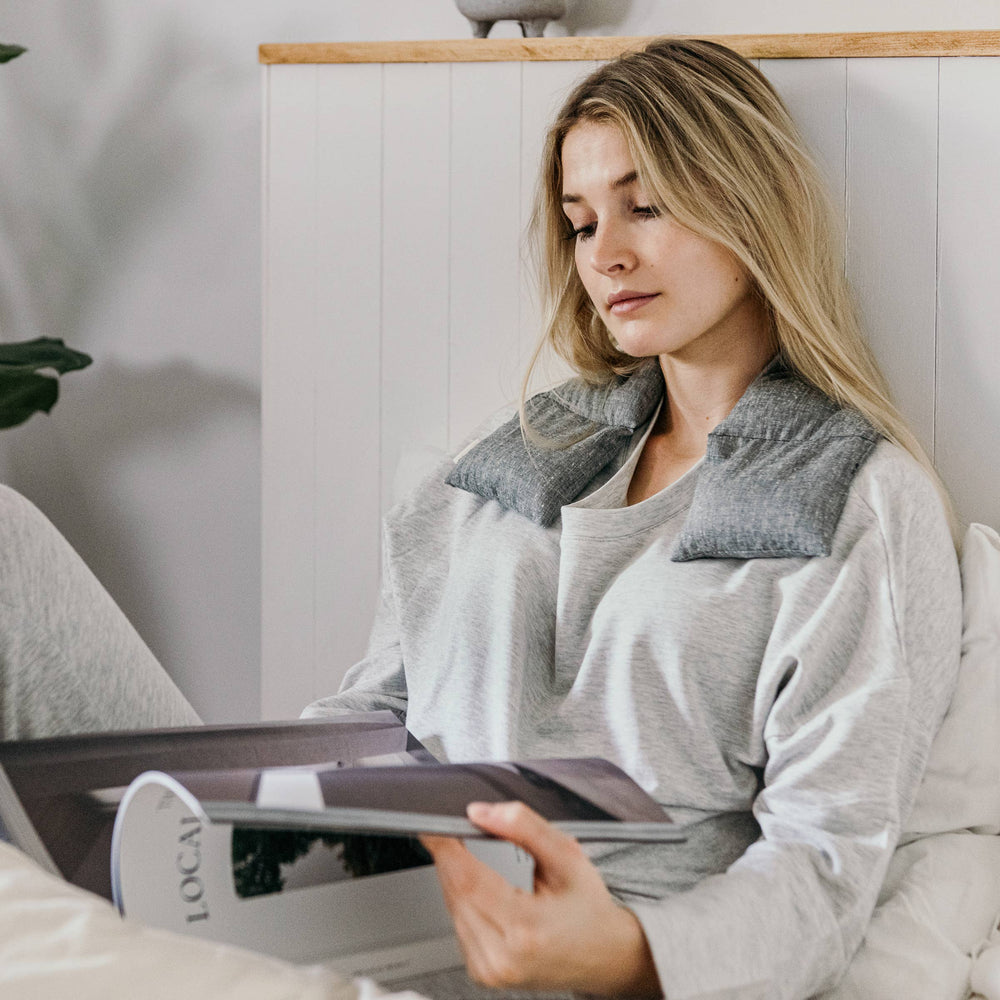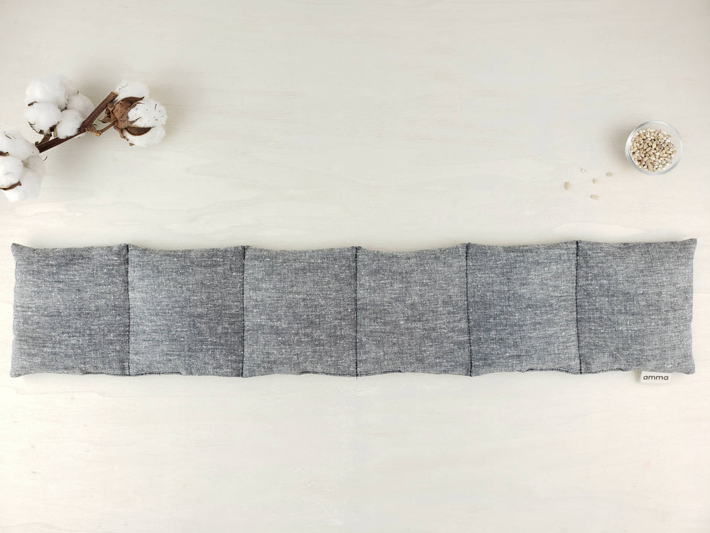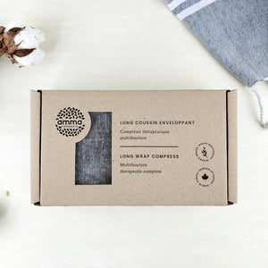The Amma Therapie compression wrap is highly versatile and suitable for the whole family. With its long sectional shape, the long compress can cover any body part to relieve muscle stiffness, stomach aches, injuries, migraines, arthritis, etc. It can also be placed on the back during a massage. The long wrap can be used as a heating pad or as a cold compress. Benefits: Relieves muscle tension and stomach aches Relieves joint pain Relieves migraines and tension headaches Facilitates breastfeeding.