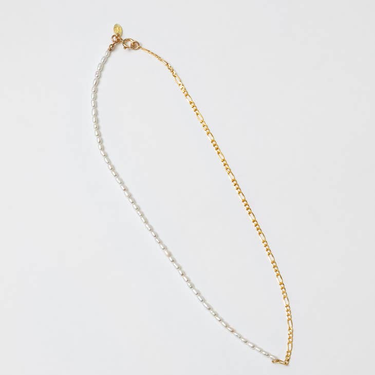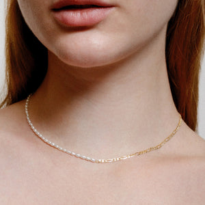 • 17" 14k gold plated 925 sterling silver figaro chain with fresh water pearls