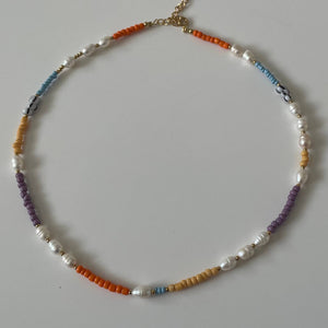 This Marcella Beaded Necklace is a stunning piece to add to your jewelry collection. Crafted with traditional beads and pearls, it will add a touch of sophistication and colour to your summer look.