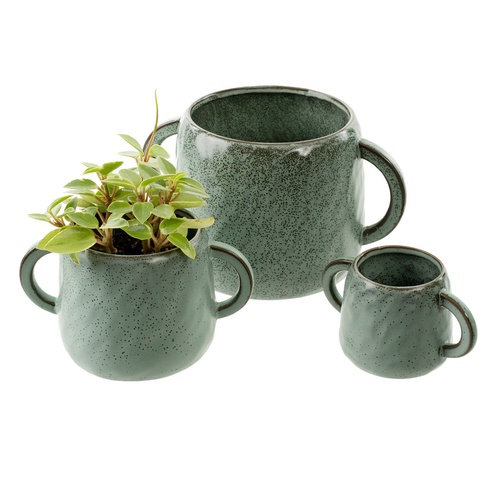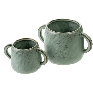 Taking their cues from nature both in colour and shape, the Niko Eared Pots are characterized by their earthen green tones and eared handles. Plant it with a small tropical plant and display it on shelving or the kitchen windowsill.