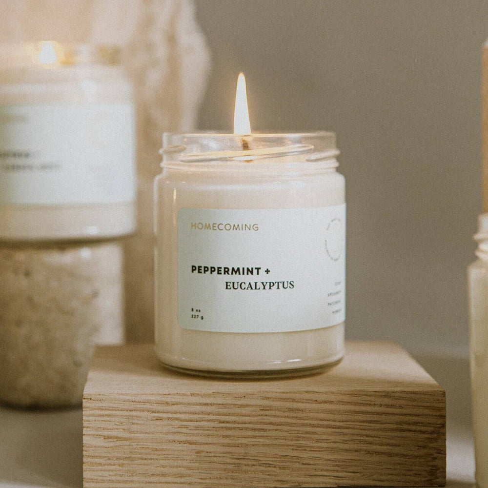 Homecoming uses all-natural soy wax, lead, and zinc-free cotton wicks, and a blend of premium essential and phthalate-free fragrance oils. Their soy candles are 100% vegan, cruelty-free, and free of petroleum and preservatives.