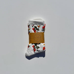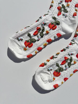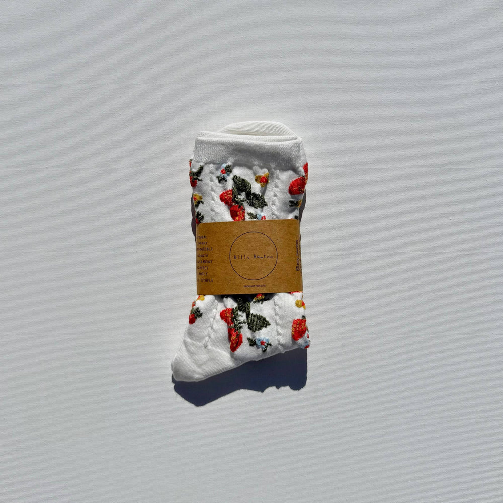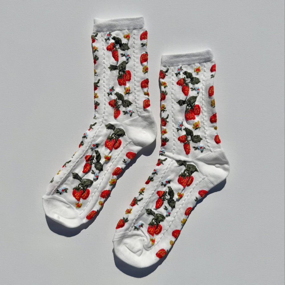 Step into summer with these delightfully charming strawberry-patterned socks, inspired by sun-kissed Canadian farms and the cozy sweetness of strawberry fields. Featuring juicy red strawberries, soft pink hues, and delicate white strawberry blossoms, these socks bring a playful touch of nature’s cutest fruit to your everyday style.