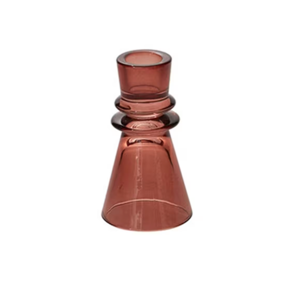 With its low profile, thick glass, sculptural silhouette, & smoky brown hue, the small Sumba Candleholder creates an eye-catching centerpiece.