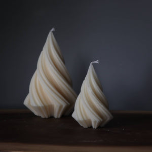 Introducing the swirl Christmas Tree Candle, each tree is individually handmade with natural soy wax. Our Swirl tree candle can be styled on your dining table, coffee table, or on your mantel (to name a few).