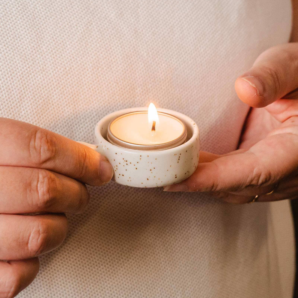 Not just your ordinary holder, its ceramic build radiates warmth, and the little imperfections? Well, they tell a story of hands that molded it with care. So, each time you light up a tea candle, remember there's a craftsman out there who poured their heart into making your evenings just a tad more magical.