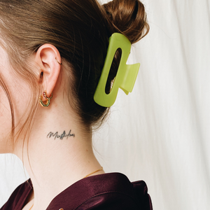 The Ronda Hair Clip in Green is a modern and funky hair accessory that adds a touch of elegance to any hairstyle. Its rounded shape and vibrant green color make it stand out, while its functionality ensures easy and secure hair styling.