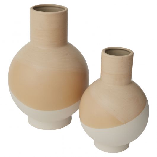 The Waverly Vase is a neutral but impactful design. Featuring a round form and clean lines of warm creams and dijon.