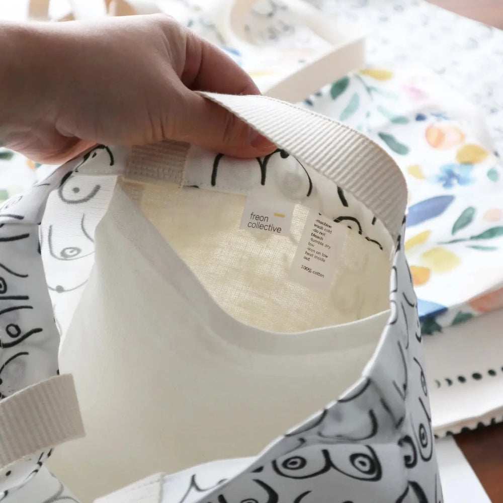 Keep it casual, practical, and fun! Our tote bags are made from linen and combed cotton, and printed with an eco-friendly digital printing technique. Handmade in Toronto, ON, these bags are perfect to use as an every day tote, or as a reusable shopping bag for groceries, shopping, and more!